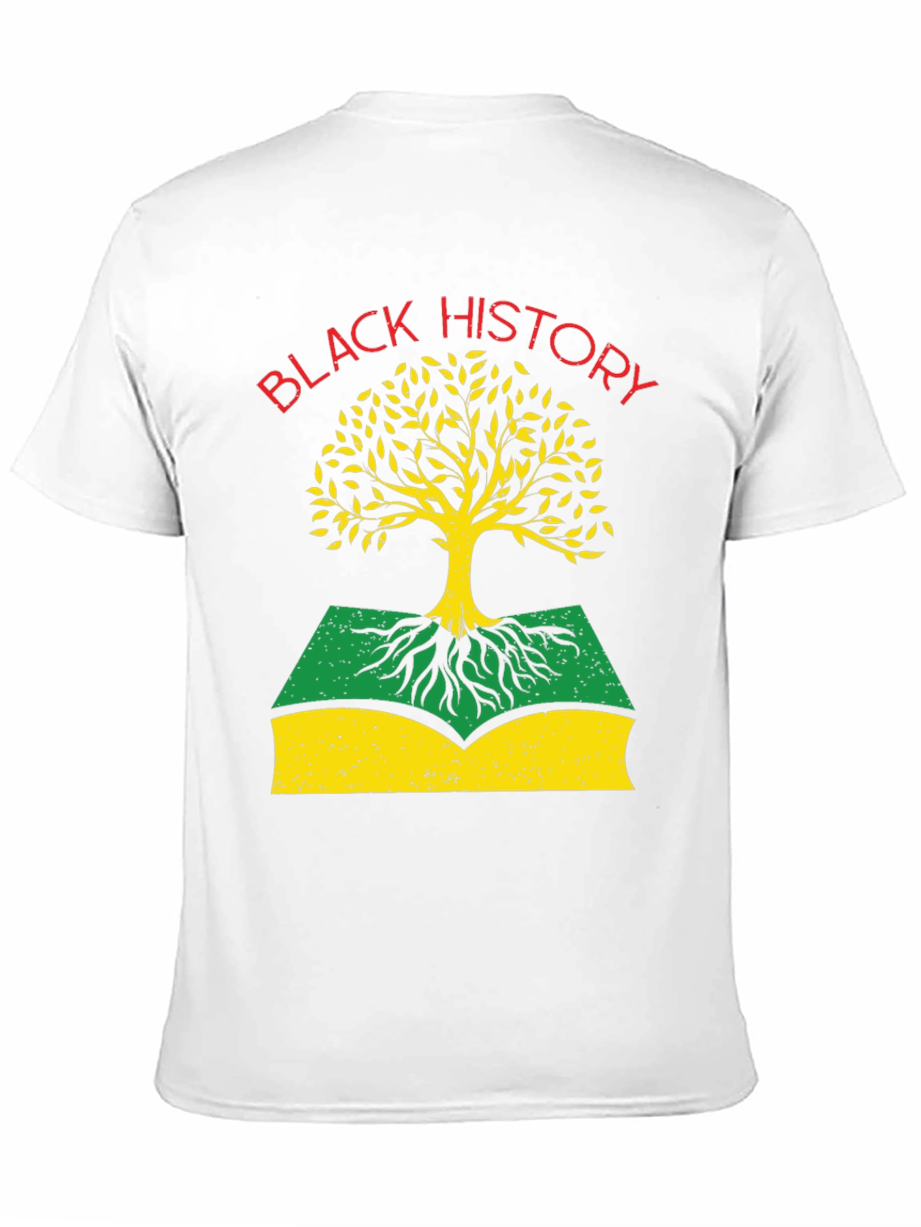 Celebra la historia afroamericana con esta camiseta única. Con un diseño llamativo, esta camiseta presenta un árbol de la vida vibrante en colores verde, amarillo y rojo, enraizado en un libro abierto. El texto "Black History" se muestra en la parte superior en letras rojas llamativas. Confeccionada con materiales suaves y cómodos, esta camiseta es perfecta para usar a diario y mostrar tu apoyo a la cultura y la historia afroamericana. Ideal para eventos culturales, celebraciones o simplemente para expresar tu individualidad con estilo. Una prenda imprescindible para cualquier persona que valore la historia y la diversidad.