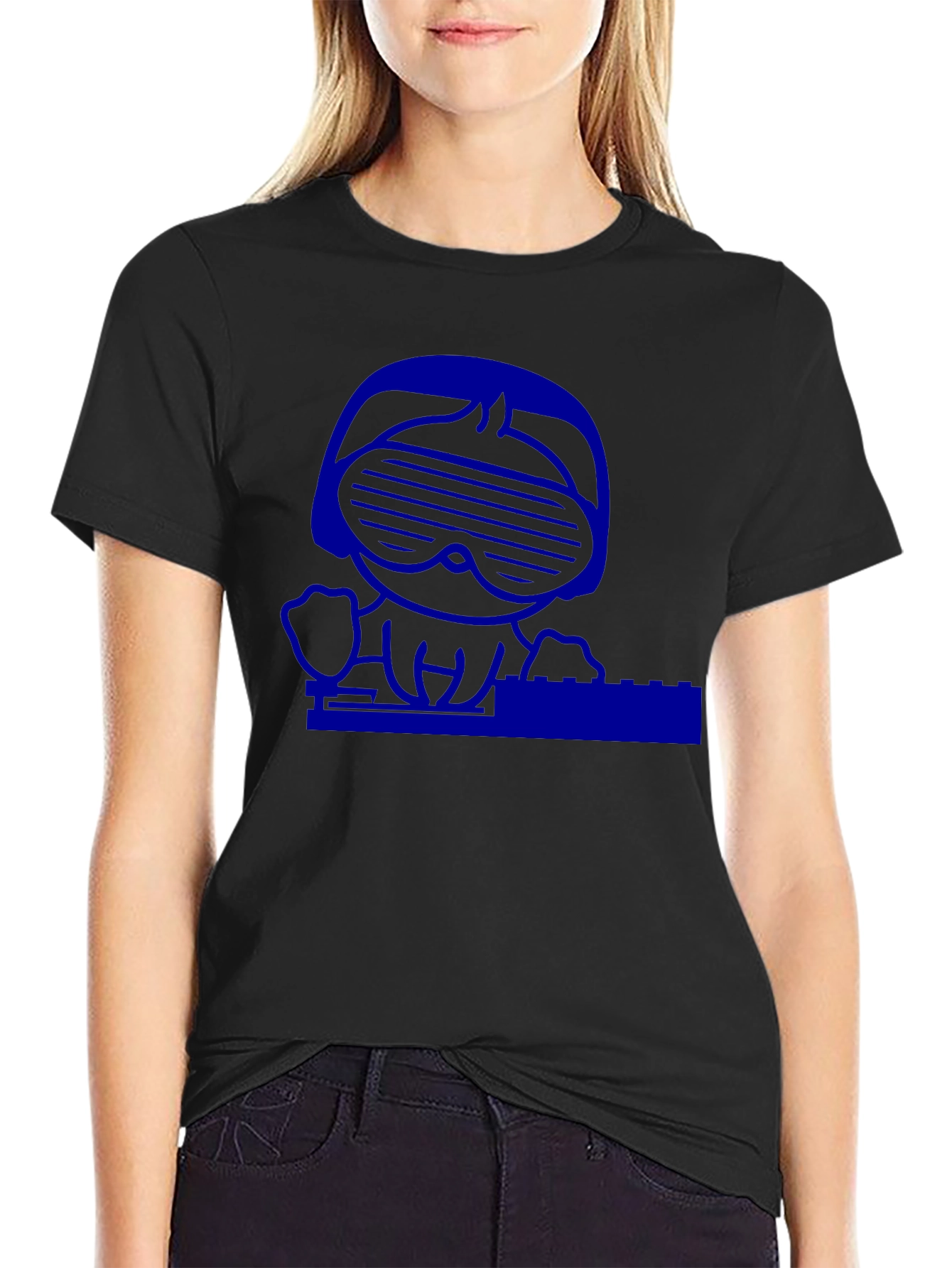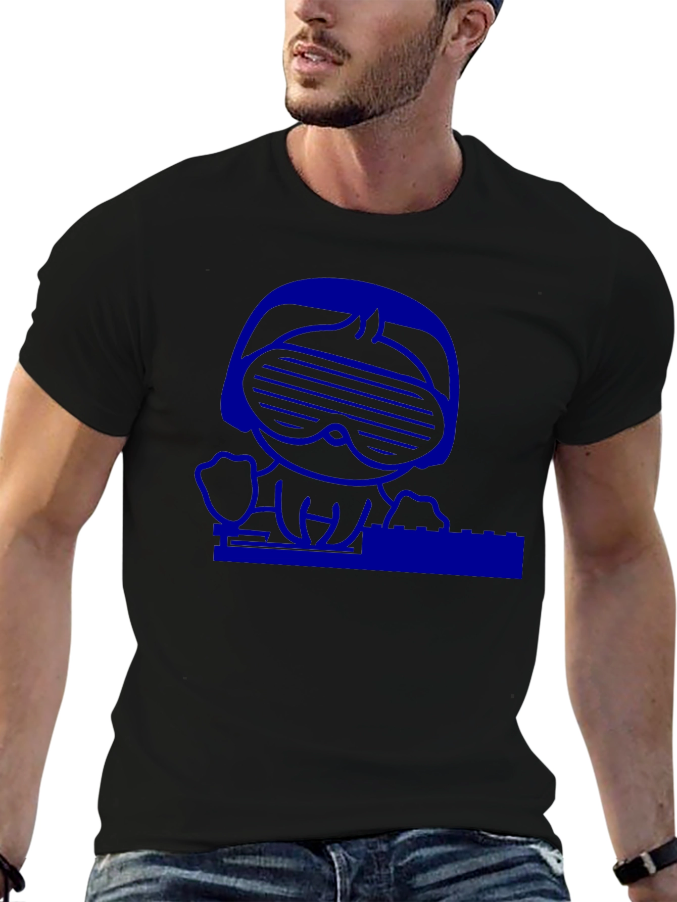 Camiseta Negra con Diseño Gráfico Azul